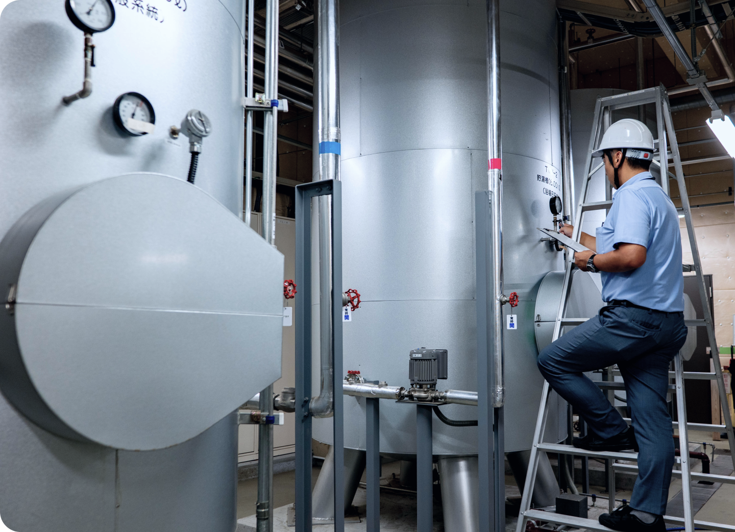 弊社は、清掃の定期案内から清掃消毒作業、不良箇所の報告、水槽設備の補修まで、給水設備のメンテナンスに関するあらゆるサービスを一貫して行っています。